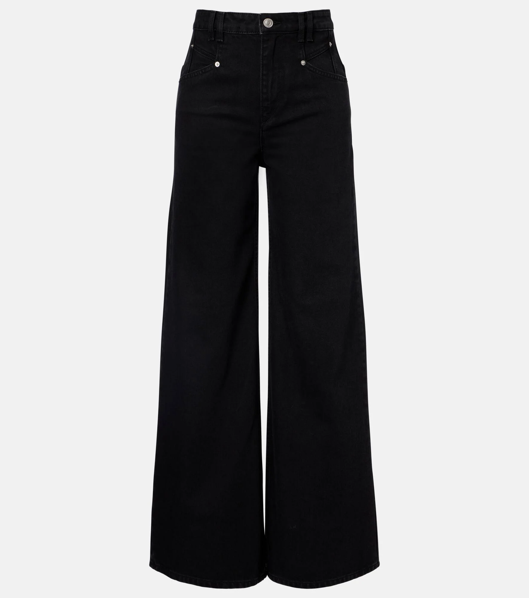 Inspired by Parisian style, each Isabel Marant piece blends refined design with effortless looks for daily life. The Lemony jeans are cut to a wide-leg silhouette with a washed finish. Product Details - Material: 100% cotton - Care instructions: machine wash at 30 degrees - Made in Tunisia - Designer color name: Faded Black - Item color: black - Pocket lining: 65% polyester, 35% cotton - Pockets: slant pockets, back pockets - Double belt loops - Item number: P01133104 Size & Fit - True to size - Non-stretchy fabric - Wide-leg - High-rise - The model seen in the picture is 178cm-5'10" and wearing a size FR 36