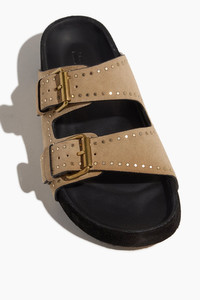 The Isabel Marant Lennyo Sandal are a must-have addition to your spring and summer wardrobe. These sandals feature a molded footbed with stud detailing. FIT DETAILS - Slip on sandals - Molded footbed - Buckles - Stud detail - Leather