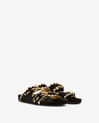 Flat sandals in embellished suede leather Straps with engraved metal buckles Metallic triangles on the edges Gold-finish metal details Soft leather outsoles Soft leather insoles Style: SD0014FAC2B04SBKGO LENNYO 100% soft leather