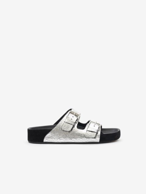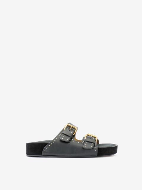 100% suede calf leather Sandals in soft leather Round open toes Two adjustable studded openwork straps Visible seams Soft leather insoles Thick leather outsoles Flat heels Style: SD0118FA-B2B11S LENNYO