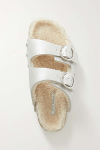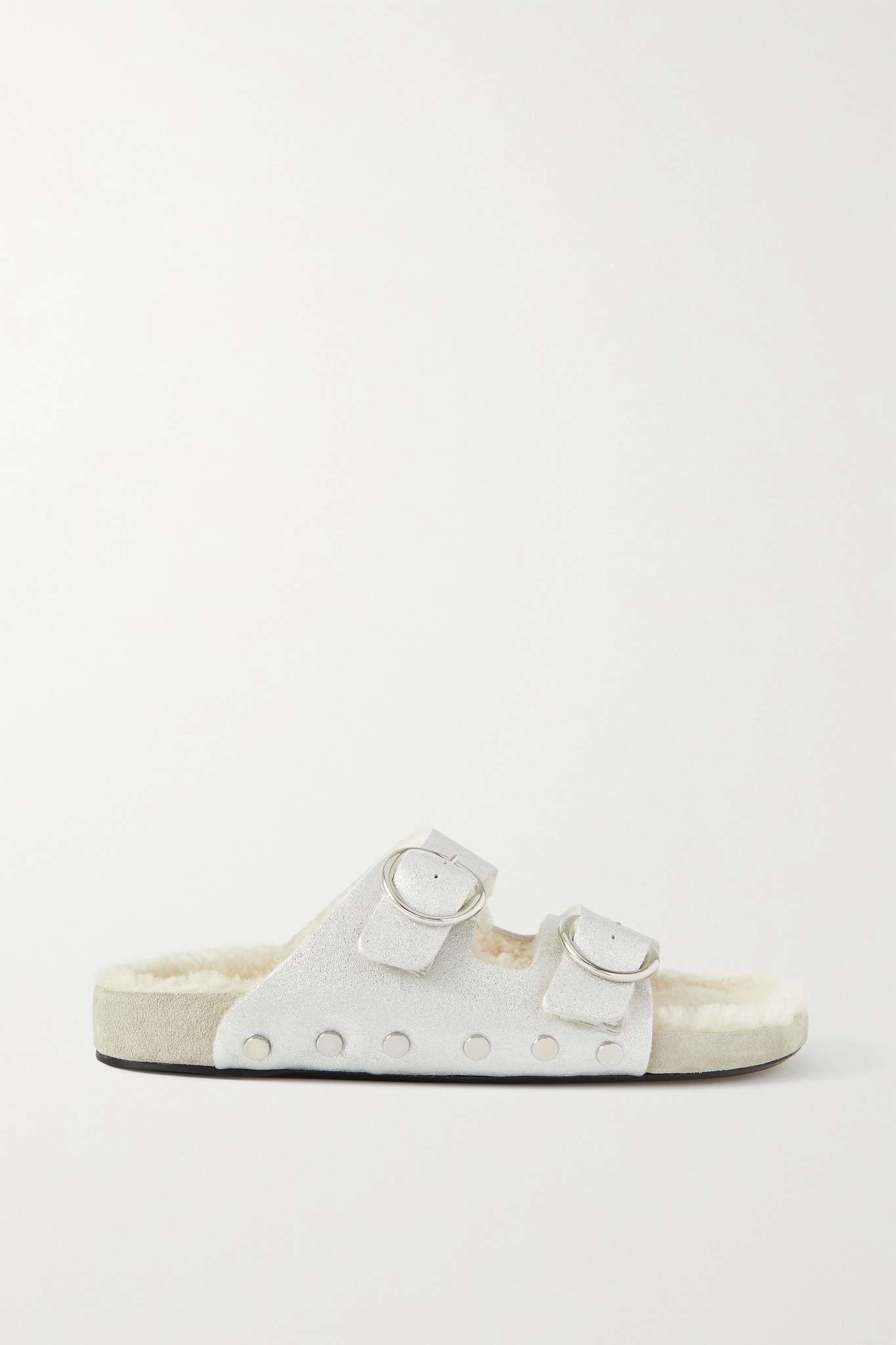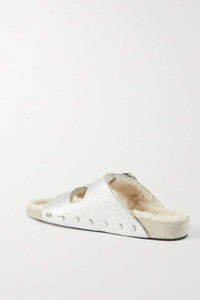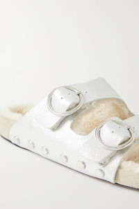 EDITORS'NOTES Isabel Marant's 'Lennyo' slides are a brand signature that's re-imagined every season for cool, new finishes. This pair is made from metallic leather with coordinating buckles and studs, and lined in fluffy shearling. Style them with straight-leg jeans and socks. SIZE & FIT - DETAILS & CARE - Sole measures approximately 25mm/ 1 inch - Silver leather (Cow) - Buckle-fastening straps