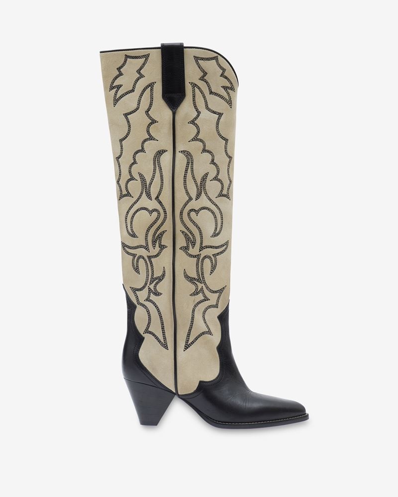 Black and ecru suede boots Heel: 6 cm / 2.4 in. Reference: BT0017FA-A3A58S LIELA 75% Calfskin leather, 25% Bovine leather FITTING ADVICE Fits true to size