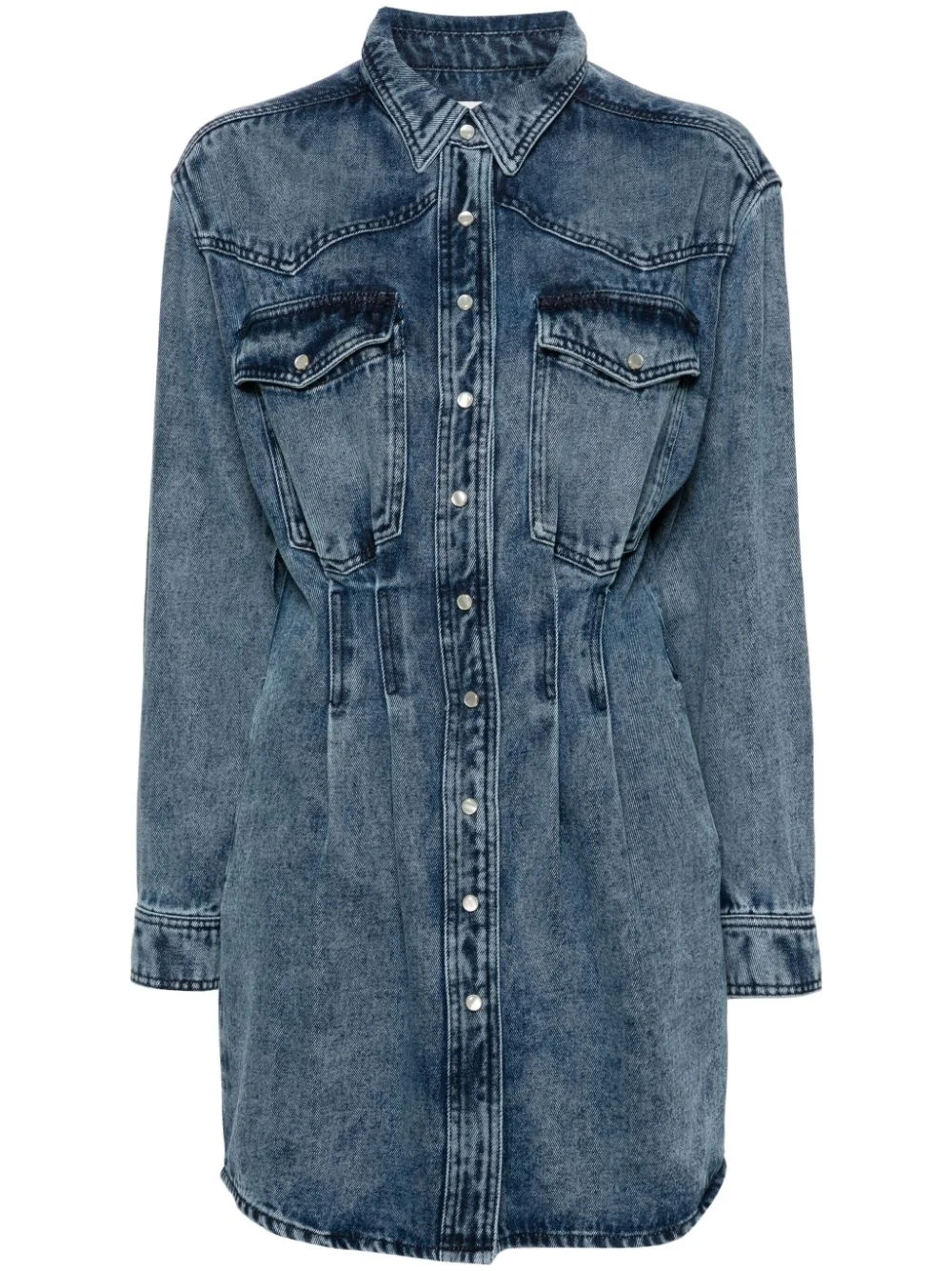 Liliko denim shirt minidress A classic silhouette ideal for everyday use, Isabel Marant's Bridget denim shirt dress is crafted from a lyocell blend with practical appeal. Highlights - Light blue - Washed denim - Panelled design - Pleat detailing - Classic collar - Front press-stud fastening - Long sleeves with press-stud fastening cuffs - Two chest flap pockets - Two side slit pockets - Curved hem - Thigh-length - Unlined Imported Composition Outer: Lyocell 77%, Cotton 23% Lining: Polyester 65%, Cotton 35% SIZE & FIT Model measurements Height 5 ft 11 in(1.8 m) Bust/Chest 33.07 in(84 cm) Hips 37 in(94 cm) Waist 25.59 in(65 cm) FittingInformation Designed for a slim fit that sits just away from the body offering a close yet comfortable fit Sturdy and hard-wearing, this denim piece offers no stretch This piece fits true to size – take your usual size