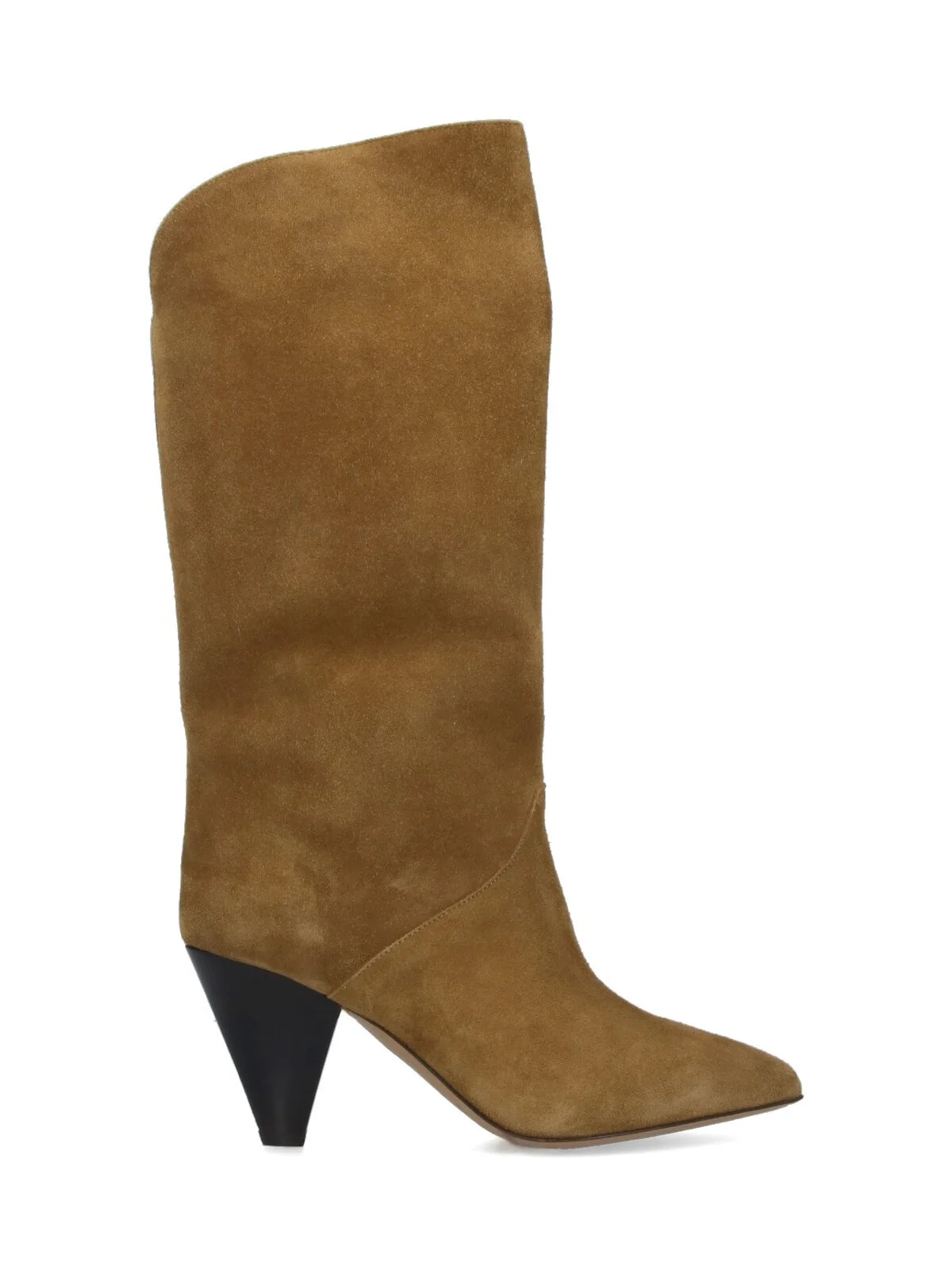 ISABEL MARANT 'LIRINA' HIGH BOOTS IN BROWN SUEDE WITH POINTED TOE, SCULPTED HEEL, SLIP-ON FIT, LEATHER SOLE. PRODUCT INFO PRODUCT CODE BT0033FA C1A10S67SA COMPOSITION: 100% CALF LEATHER SIZE AND FIT: HEEL 8.5 CM MADE IN: ITALY - SOLE: 100% LEATHER