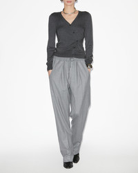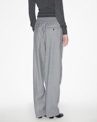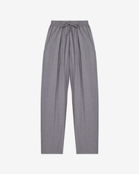 Pants in striped virgin wool Elastic waist with drawstring Italian pockets on the sides Buttoned piped pockets in back Relaxed straight cut Style: PA0326FBB1F01I02GY LISKA 96% virgin wool, 4% elastane