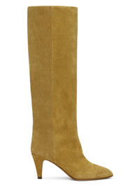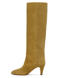 Knee-high suede boots in khaki. · Pointed toe · Grained leather lining in beige · Covered stiletto heel with rubber injection · Leather sole · Heel: H2.75" Supplier color: Taupe/Khaki Upper: calfskin. Sole: leather, rubber. Made in Portugal 241600F115001