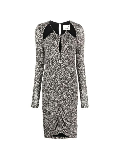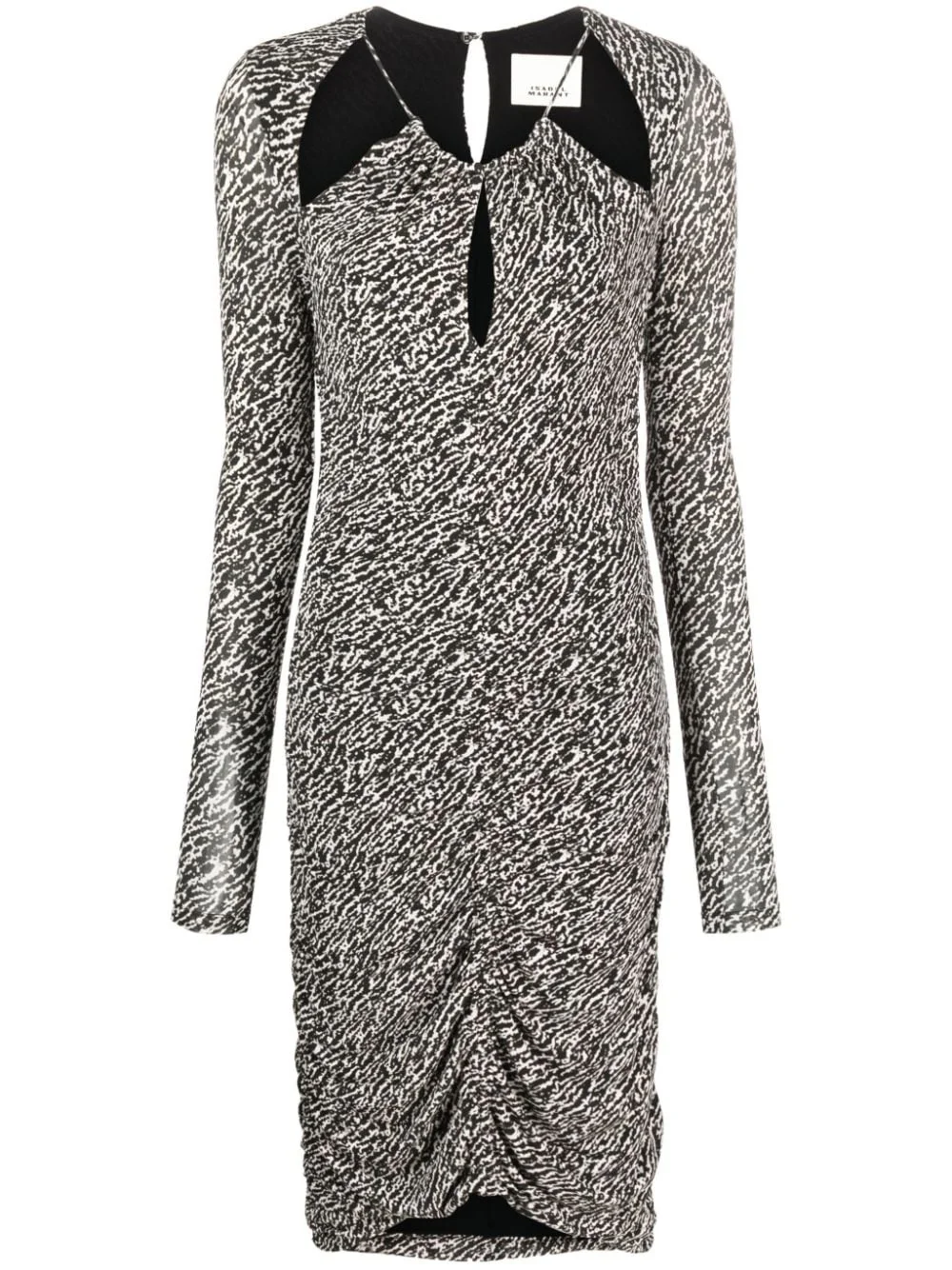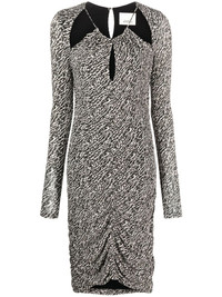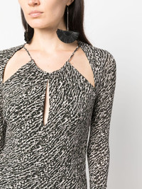 Logane cut-out midi dress Highlights - Black/white - Stretch-design - Abstract pattern print - Cut-out detailing - Round neck - Long sleeves - Gathered detailing - Rear button fastening - Below-knee length Imported Composition Lining: Viscose 92%, Spandex/Elastane 8% Outer: Viscose 92%, Spandex/Elastane 8% SIZE & FIT Model measurements Height 5 ft 10 in(1.78 m) Bust/Chest 31.49 in(80 cm) Hips 36.22 in(92 cm) Waist 25.59 in(65 cm) FittingInformation Designed for a slim fit that sits just away from the body offering a close yet comfortable fit Made from a midweight stretch fabric, this piece offers elasticity and flexibility when worn This piece fits true to size – take your usual size Washing instructions Hand Wash