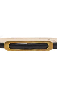 Isabel Marant's larger-than-life silhouettes often work best when paired with a statement belt. This 'Leyden' style has a slim silhouette made from smooth leather with a large antiqued gold buckle that lends sculptural appeal. Style it with the designer's billowing blouses and flowing maxi dresses. PRODUCT DETAILS - Buckle fastening - Composition: leather - Made in Italy