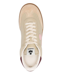 logo low-top sneakers Highlights - Beige - Logo detail - Burgundy heel - Suede panel - Leather upper - Lace-up fastening - Rubber sole - This piece comes complete with a protective dust bag. Imported Composition Outer: Lambskin 100% Lining: Sheepskin 100%, Fabric 100% Sole: Rubber 100%