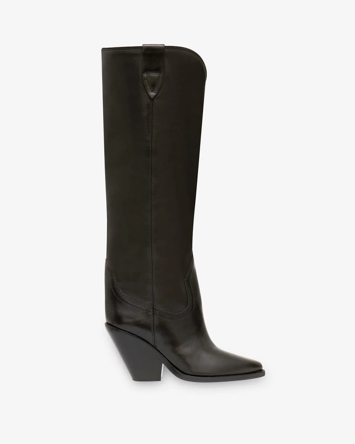 100% leather Black suede leather knee-high boots Cowboy style Pointed toe Heel: 9 cm / 3.5 in Style: BT0002FA-A1A04S LOMERO