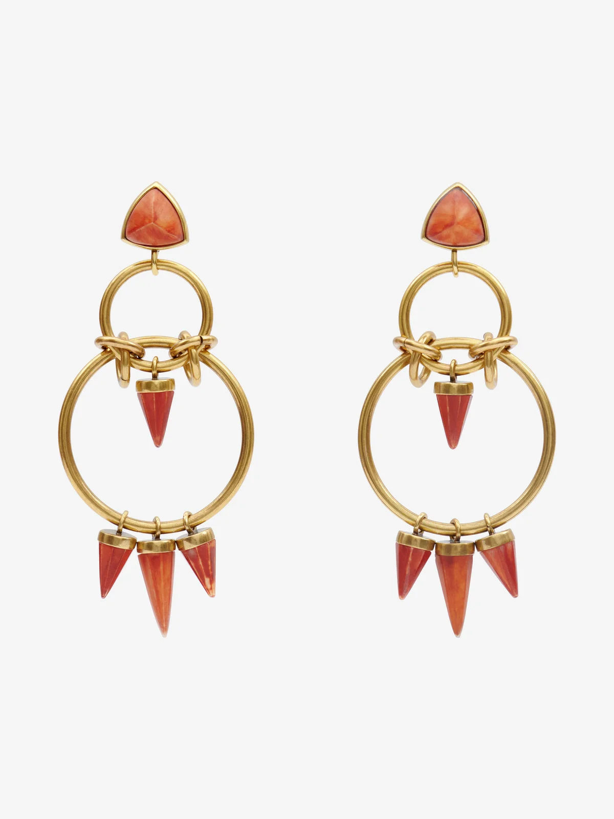 Hoop and pendant earrings Colorful resin base and pendants Gold-finish brass rings Height: 9 cm / 3.5 in. Style: BL0224FAC2B11HELS BE WITH YOU 80% brass, 20% resin