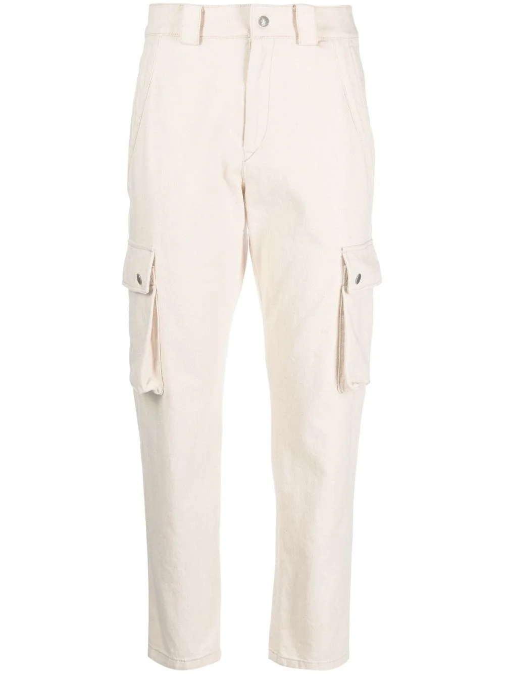 Evalia cargo trousers Highlights - Ecru - Cotton - Belt loops - Button fly fastening - Diagonal pocket to the side - Two side cargo pockets - Straight hem - Cropped Imported Composition Lining: Cotton 100% Outer: Cotton 100% SIZE & FIT Model measurements Height 5 ft 10 in(1.79 m) Bust/Chest 31.1 in(79 cm) Hips 35.03 in(89 cm) Waist 24.01 in(61 cm) FittingInformation Designed for a tapered fit, these jeans allow a close fit at the waist and a loose unrestricted fit over the leg with a closer fit towards the ankle Sturdy and hard-wearing, this denim piece offers no stretch This piece fits true to size – take your usual size Washing instructions Machine Wash