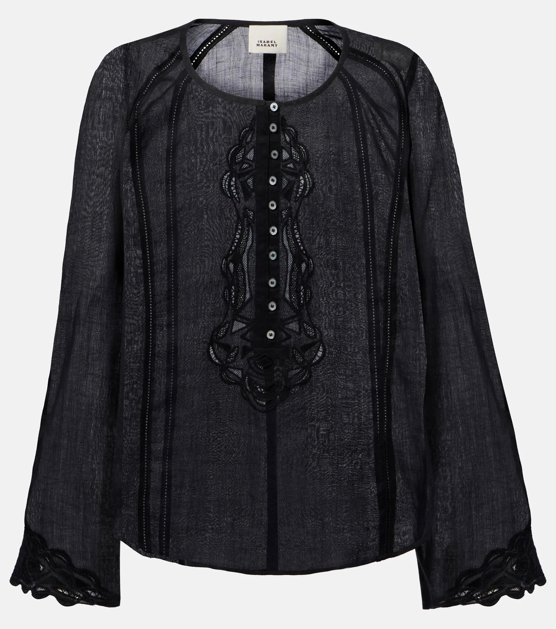 Crafted from lightweight ramie, the Luciele blouse features delicate embroidery and a relaxed silhouette. A testament to authentic and effortless Parisian style, each Isabel Marant piece is designed to get you from A to B. Product Details - Material: 100% ramie - Care instructions: hand wash - Made in India - Designer color name: Black - Item color: black - Closure: partially buttoned front - Embroidery: 100% polyester - Details: 100% cotton - Item number: P01062225 Size & Fit - True to size - Semi-sheer - Straight fit - Non-stretchy fabric - Falls to the hip - The model seen in the picture is 178cm-5'10" and wearing a size FR 36
