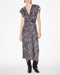 Printed gathered midi dress Low-cut V-neckline Short sleeves Gathers with a draped effect on the front Done up in back with a button and a hidden zipper Crepe lining Flowing cut, fitted at the waist Style: RO0229FA-B3J05I LYNDSAY 65% viscose, 35% silk