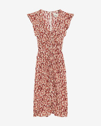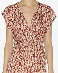 Gathered printed silk blend midi dress Low-cut V-neckline Short sleeves Gathers with a draped effect on the front Done up in back with a button and a hidden zipper Crepe lining Flowing cut, fitted at the waist Style: RO0229FAC3J10I80GT LYNDSAY 65% viscose, 35% silk