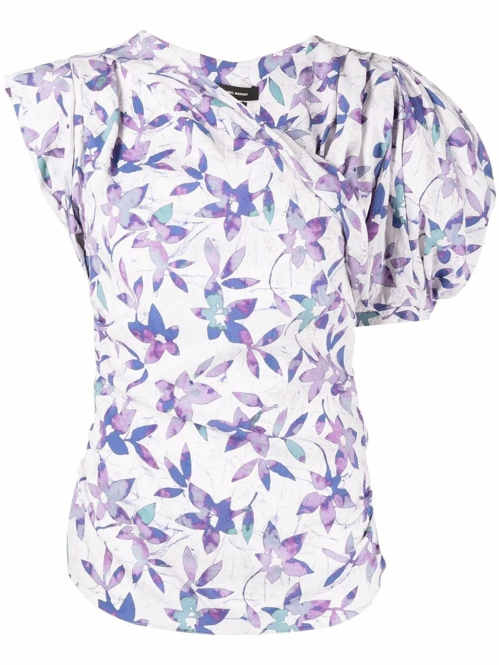 Madinea floral-print blouse ecru/purple asymmetric design all-over floral print twist detailing straight hem Imported Composition Viscose 71%, Silk 23%, Elastane 6% SIZE & FIT Model measurements Height 5 ft 10 in(1.77 m) Bust/Chest 31.49 in(80 cm) Hips 34.64 in(88 cm) Waist 23.62 in(60 cm) Measurement BUST 33.07 in(84 cm) LENGTH 25.19 in(64 cm) WAIST 28.34 in(72 cm) SLEEVE LENGTH 5.51 in(14 cm) Shoulder Width 14.17 in(36 cm) FittingInformation This piece fits true to size. We recommend you get your regular size Cut for a slim fit Made with a mid-weight stretch fabric Washing instructions Dry Clean Only