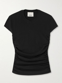 Isabel Marant's 'Maelie' T-shirt is ruched along the sides, making it both comfortable and flattering. It’s cut from soft cotton-jersey and has a slim fit. Size & Fit - Fits true to size, take your normal size - Designed for a slim fit - Lightweight, stretchy fabric - Model is 177cm/ 5'10" and is wearing a size Small Model measurements: - Bust: 80cm/ 31.5" - Waist: 60cm/ 23.5" - Hip: 89cm/ 35" Details & Care - Black cotton-jersey - Slip on - 100% cotton - Machine wash