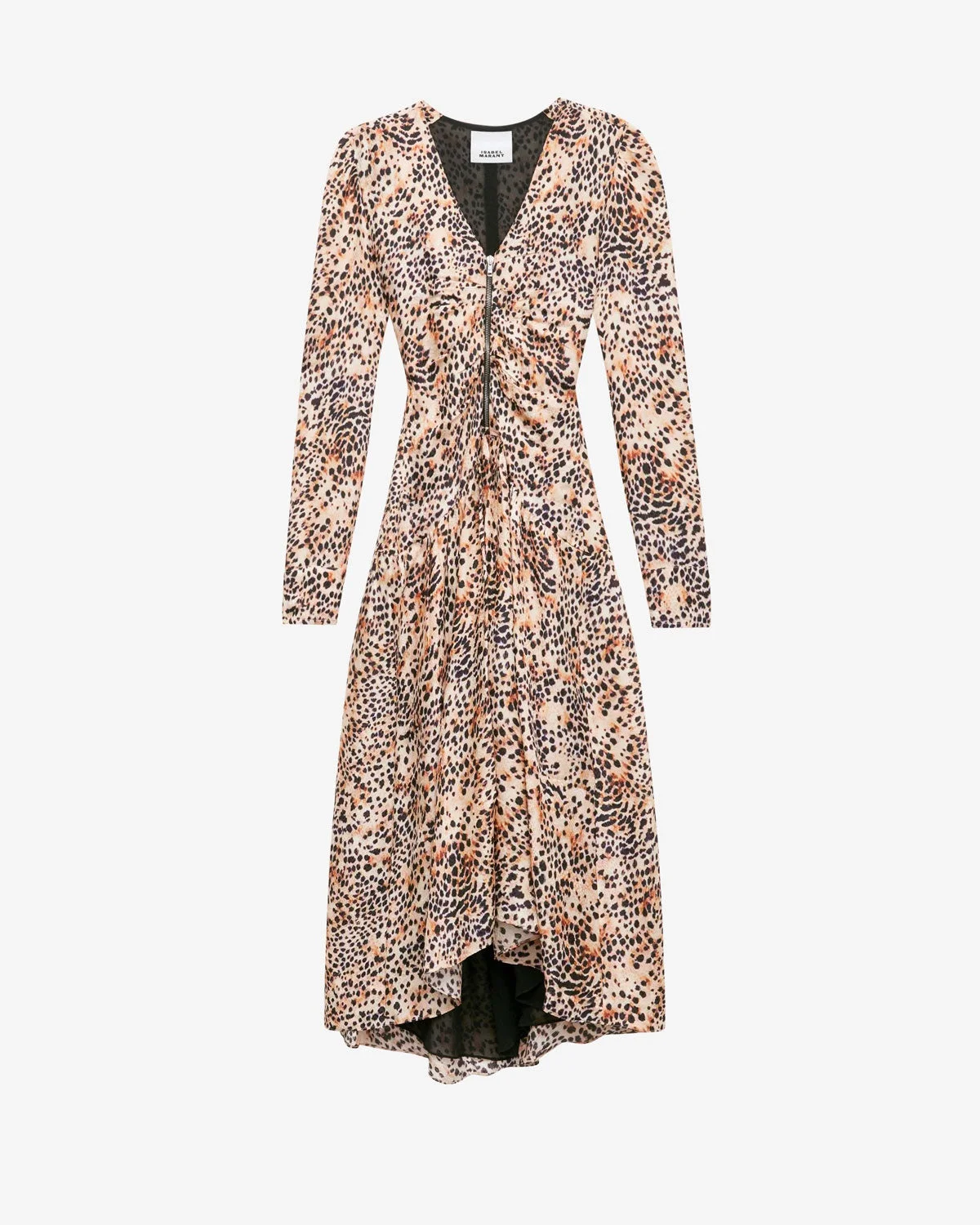 Gathered silk blend midi dress Low-cut V-neckline Long sleeves with cuffs Gathers with a draped effect on the front Done up in front with a visible, silver-finish metal zipper Asymmetrical hem Crepe lining Flared cut with a fitted waist Style: RO0574FA-B3J05I MAGALY 65% viscose, 35% silk