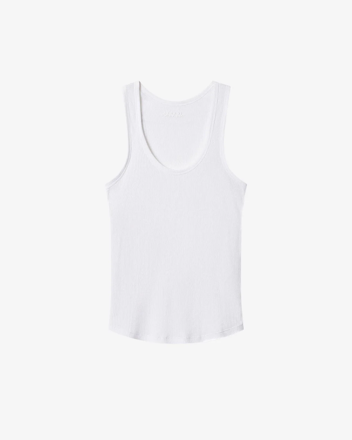 Cotton tank top Round neckline Sleeveless Fitted at the waist Style: TS0261FAA2N39I20WH THEA 100% cotton Care & Sustainability Machine wash on a gentle cycle, inside out and at a maximum temperature of 30°C For more details, see the instructions on the composition label the history and environmental impact of this product
