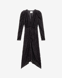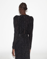 Black velvet lurex devoured dress with long puffed sleeves V neck Reference: RO0173FAA4J02I01BK 62% Viscose, 30% Silk, 8% Nylon