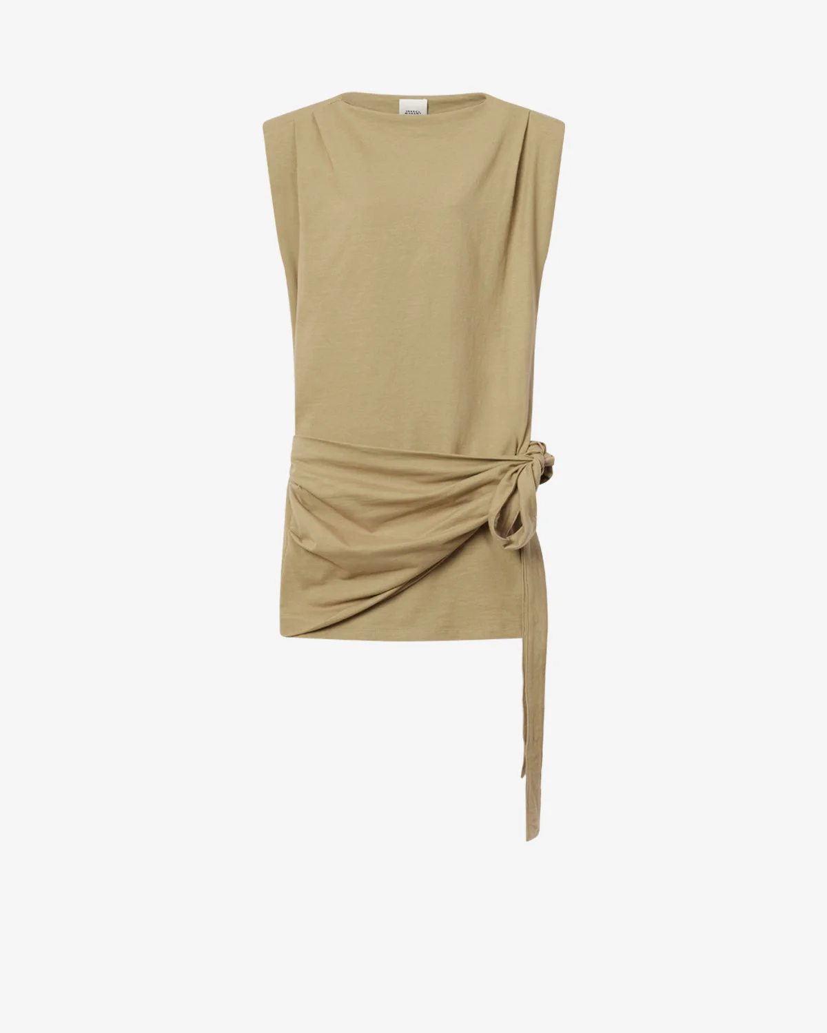 Draped cotton jersey dress Boat neck Structured shoulders with pads and pleats Short sleeves Draped tied tail on the side Short and fitted Style: RO0874FAA1N41I50LB 100% cotton (1) Care & Sustainability Machine wash on a gentle cycle, inside out and at a maximum temperature of 30°C For more details, see the instructions on the composition label