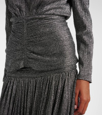 Isabel Marant captures the essence of Parisian chic with designs that blend relaxed elegance with a subtly rebellious spirit. The Marlin long-sleeve top features a glimmering embellishment, a flattering V-neckline, and a zip closure. Product Details - Material: 75% polyester, 25% metallic fibres - Care instructions: dry clean - Made in Bulgaria - Designer color name: Silver - Item color: silver - Details: 100% silk - Lining: 100% silk - Closure: invisible zipper - Item number: P01108408 Size & Fit - True to size - Oversized shoulders - Shoulder pad inserts - Cinched waist - Non-stretchy fabric - Falls to the hip - The model seen in the picture is 178cm-5'10" and wearing a size FR 36