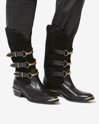 Suede and calfskin leather boots Adjustable metal buckle straps Gold-finish heels and toes Pointed toes Cuban heels Soft leather insoles and outsoles Soft leather lining Heel height: 3 cm / 1.2 in. Style: BO0213FAD1A39S01BK MEXIA 55% suede calfskin leather, 45% calfskin leather Care & Sustainability the history and environmental impact of this product