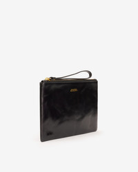 Shiny leather clutch bag Carried by hand Embossed "Isabel Marant" logo on the front Done up with a zipper Strap Golden metal details Twill lining Size: 22 x 14.5 x 1 cm / 8.7 x 5.7 x 0.4 in. Style: MP0026FB-A1C13M MINO 100% bovine leather