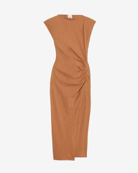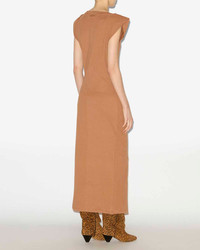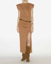 Plain-colored cotton jersey dress Boat neck Removable snap-fastened shoulder pads Short sleeves Pleats and slit in front Long and fitted Style: RO0307FAA1N41I50CA NADELA 100% cotton