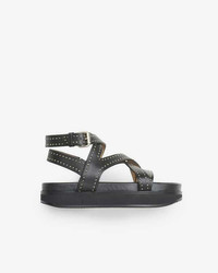 100% leather Flat leather sandals with studs Round open toe Cross-over straps at vamp Molded leather insole with embossed logo Lugged rubber sole Platform 2, 5 cm