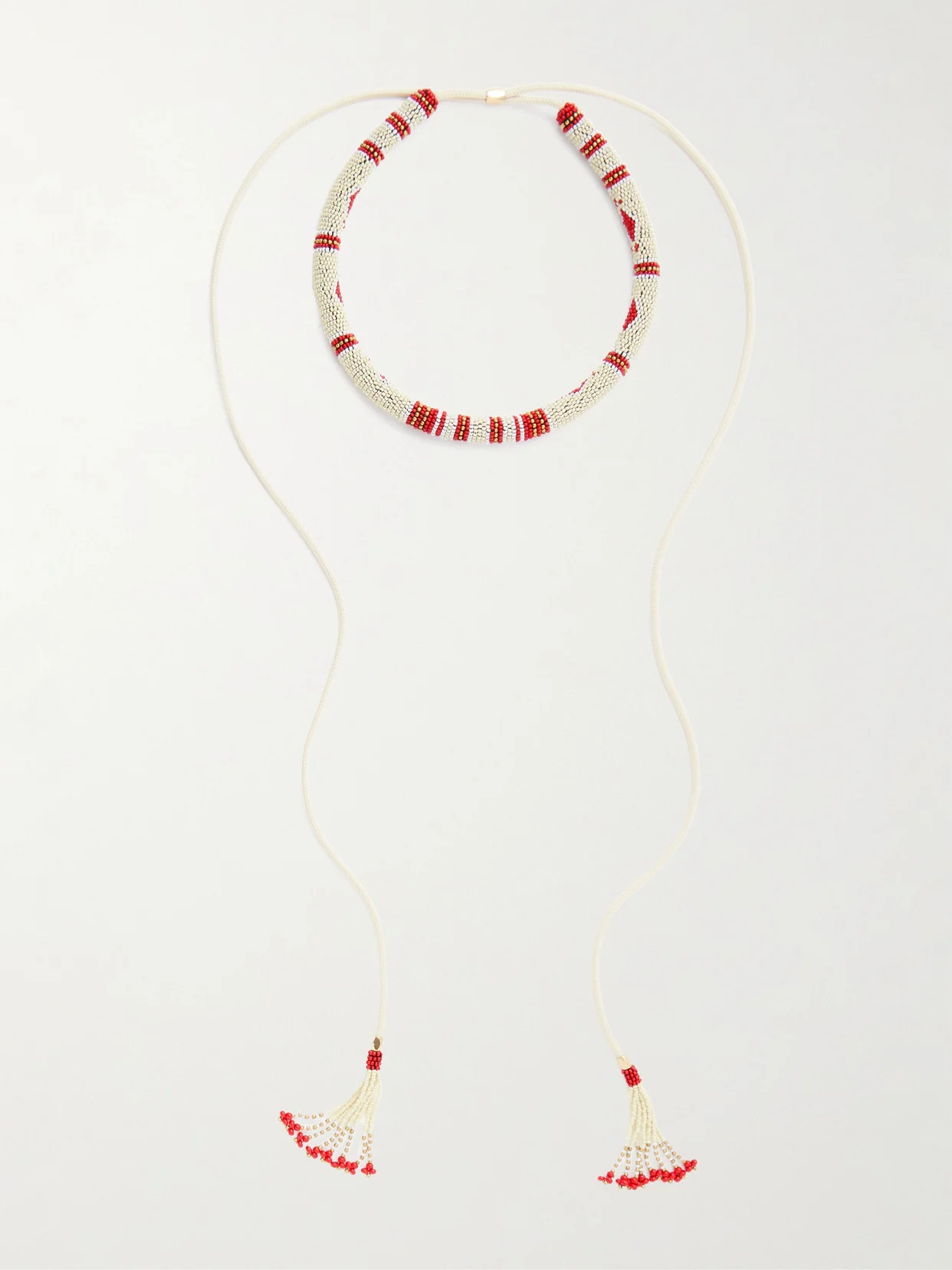 Just like the label's ready-to-wear, Isabel Marant's jewelry is imbued with bohemian charm. Made from cord, this 'Nina' necklace has an adjustable beaded choker and elongated tasseled ties.
