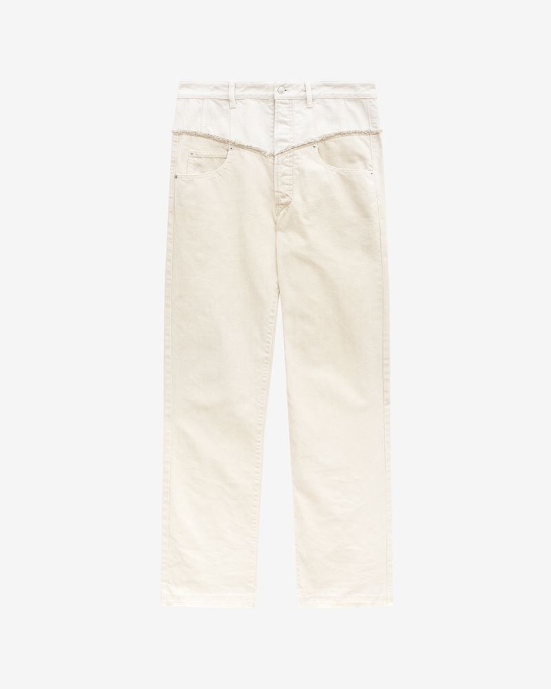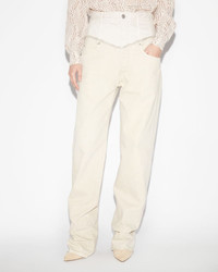 Piece from the Winter 2023 fashion show Ecru denim pants Regular waist Relax flare Bicolor Jacron at back Four pockets Reference : PA0209FA-A4H13I23EC NOEMIE 100% Cotton