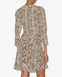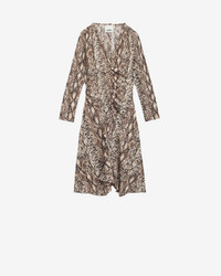 Gathered silk blend dress with python print Low-cut V-neckline Slit 3/4 sleeves Gathered and draped Flared skirt Done up on the side with a hidden zipper Lightweight unlined fabric Flowing cut, fitted at the waist Style: RO0748FAC1J05I23NL OCTAVIA 91% silk, 9% elastane
