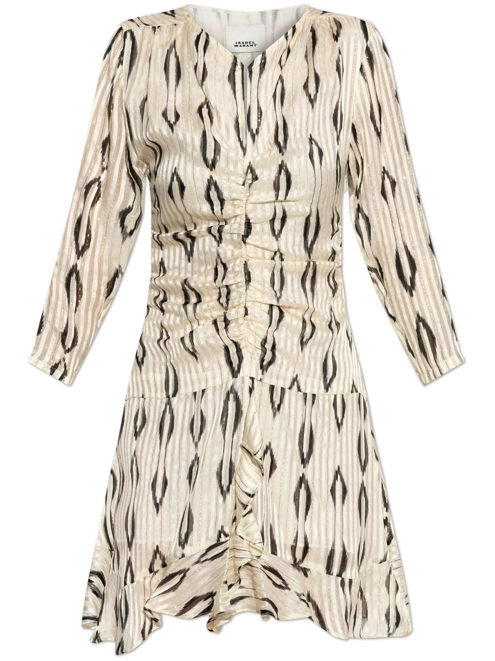 Octavia mini dress Highlights - Light beige - Concealed side zip fastening - All-over graphic print - Ruched detailing - Ruffled trim Imported Composition Outer: Silk 97%, Polyester 3% Lining: Silk 100%