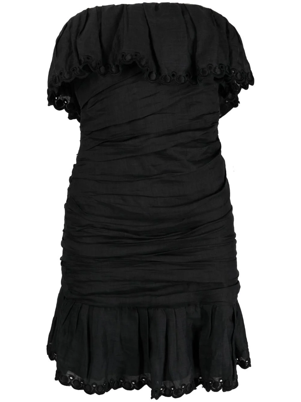 Oxani off-shoulder mini dress All-over ruching, soft ruffles and embroidered trims elevate the simple shape of this Isabel Marant minidress. It's cut from cotton to a fitted shape with an off-shoulder neckline that recalls the flared hem. Highlights - Black - Cotton - Ramie - Ruched detailing - Off-shoulder - Scallop hem - Thigh-length Imported Composition Outer: Ramie 100%, Polyester 100% Lining: Cotton 100% SIZE & FIT Model measurements Height 5 ft 10 in(1.77 m) Bust/Chest 32.67 in(83 cm) Hips 35.43 in(90 cm) Waist 23.62 in(60 cm) Measurement HIPS 34.64 in(88 cm) LENGTH 27.95 in(71 cm) WAIST 27.55 in(70 cm) FittingInformation This piece fits true to size. We recommend you get your regular size Cut for a slim fit Made with a mid-weight non-stretch fabric Washing instructions Hand Wash