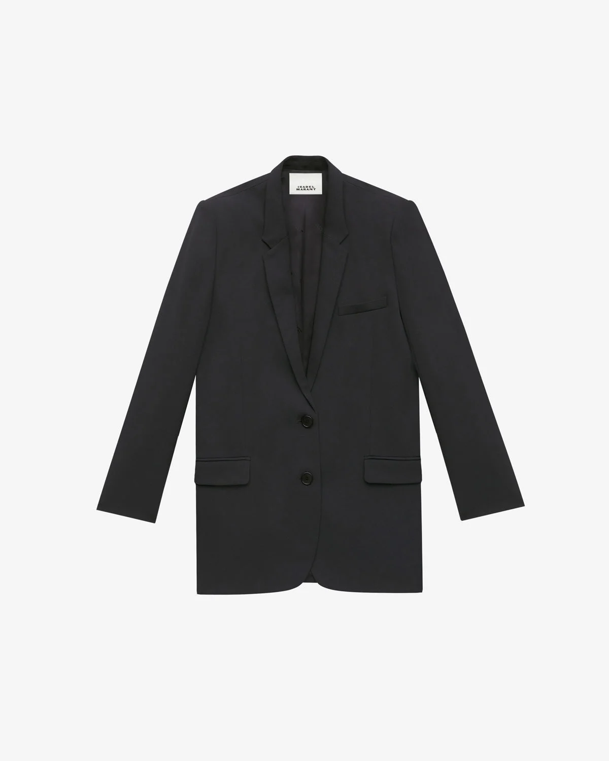 Suit jacket in plain-colored crêpe Suit collar Structured padded shoulders Long sleeves Straight buttoned cuffs Chest pocket Flap pockets Buttoned front Satin lining with "Isabel Marant" logos Straight cut, loose fit Style: VE0367FB-B3F02I OCEANY 92% polyester, 6% viscose, 2% elastane
