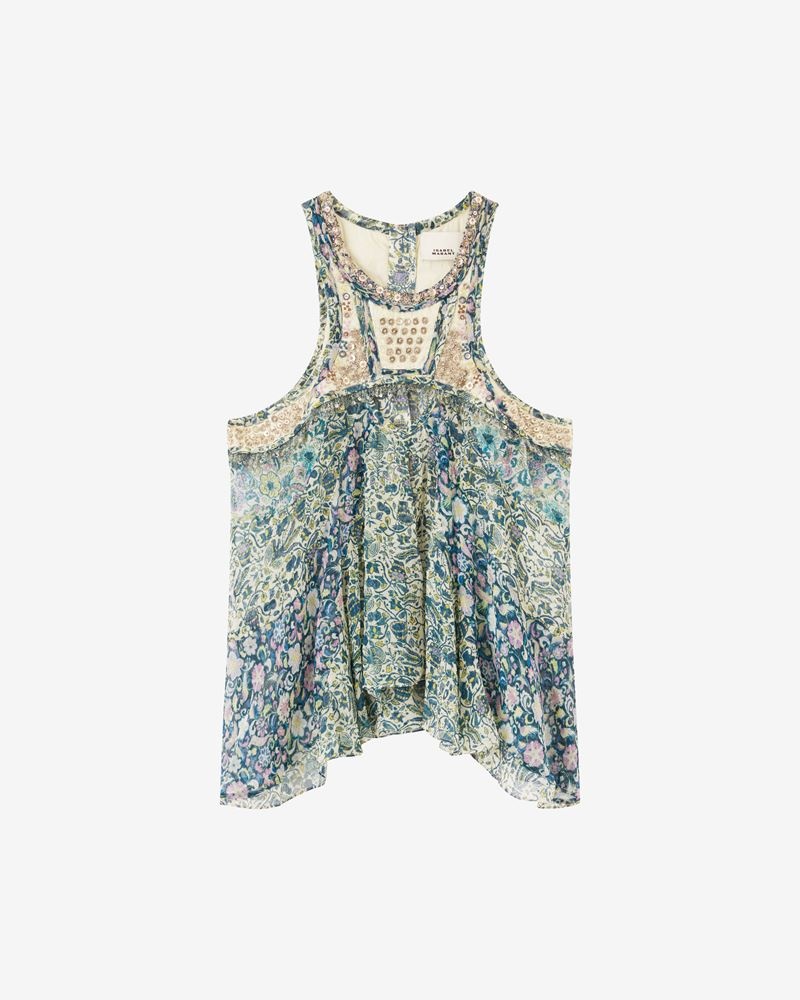 Patchwork silk chiffon sleeveless top Embroidered patterns Reference: HT0133FA-A2J02I ONYLE 100% Silk FITTING ADVICE Fits true to size The model is wearing a size FR 38 and is 177cm / 5'10" tall