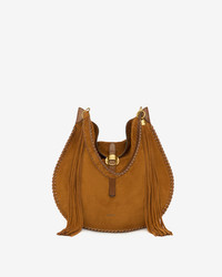 Shoulder bag in braided suede calfskin leather Carried by hand or on the shoulder Soft leather handle Engraved metal rings Pendant with suede calfskin leather fringes Metal tassel frame with an "Isabel Marant" engraving Edge adorned with soft braided leather Magnetic fastener, engraved metal plate, and leather tab Embossed "Isabel Marant" logos Gold-finish metal details Twill lining Style: PP0321FAC1C03M50CO OSKAN HOBO FOLK 100% suede calfskin leather