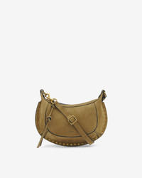 Suede calfskin leather shoulder bag Carried by hand, on the shoulder, or crossbody style Adjustable shoulder strap with a buckle Engraved metal snap hook and rings Edge adorned with studs Embossed "Isabel Marant" logo on the front Leather zipper Card pocket inside with an embossed "Isabel Marant" logo Gold-finish metal details Size: 28.5 x 18 x 9 cm / 11.2 x 7.1 x 3.5 in. Style: PP0003FAA3C32MTPGO OSKAN MOON 100% suede calfskin leather