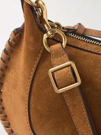Oskan Moon whipstitched leather-trimmed suede shoulder bag Brown