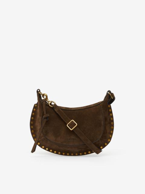 Suede calfskin leather shoulder bag Carried by hand, on the shoulder, or crossbody style Adjustable shoulder strap with a buckle Engraved metal snap hook and rings Edge adorned with studs Embossed "Isabel Marant" logo on the front Done up with a zipper with a long, tied leather slider Card pocket inside with an embossed "Isabel Marant" logo Gold-finish metal Size: 28.5 x 18 x 9 cm / 11.2 x 7.1 x 3.5 in. Style: PP0003FAC4C17M80BY OSKAN MOON 100% bovine leather