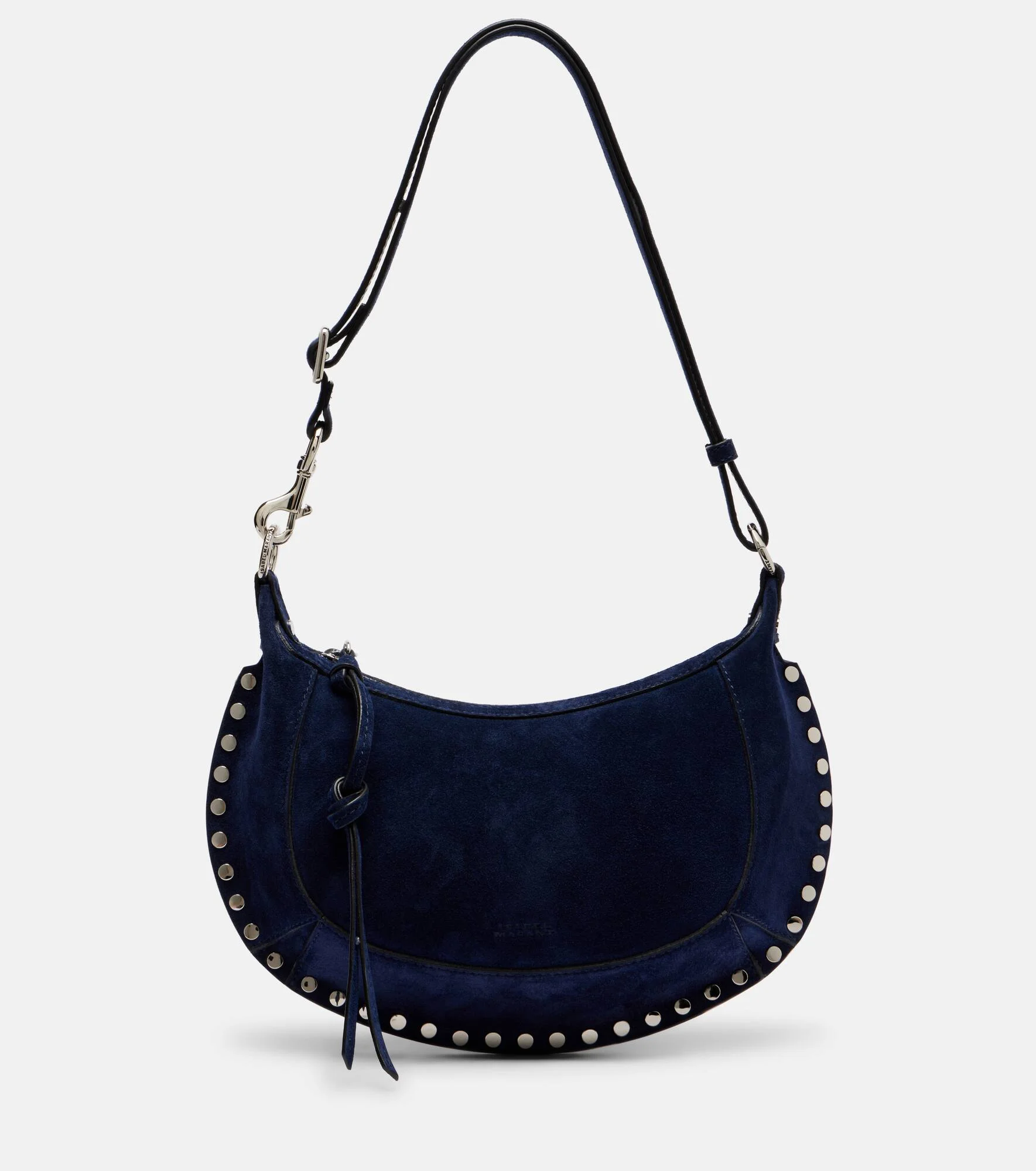 Inspired by Parisian style, each Isabel Marant piece blends refined design with effortless looks for daily life. The Oskan Moon shoulder bag is crafted from supple suede to a curved silhouette and finished with gleaming studs. Product Details - Material: calf leather (suede), cow leather - Lining: fabric - Made in Tunisia - Color: blue - Designer color name: Dark Midnight - Item color: blue - Closure: zipped top - Adjustable shoulder strap - Includes: dust bag - Item number: P01136125 Size & Fit - Height 16cm-6.5" - Width 28cm-11" - Max. depth 8cm-3" - Min. length shoulder strap 52cm-20.5" - Max. length shoulder strap 88cm-34.5"