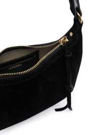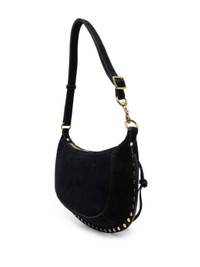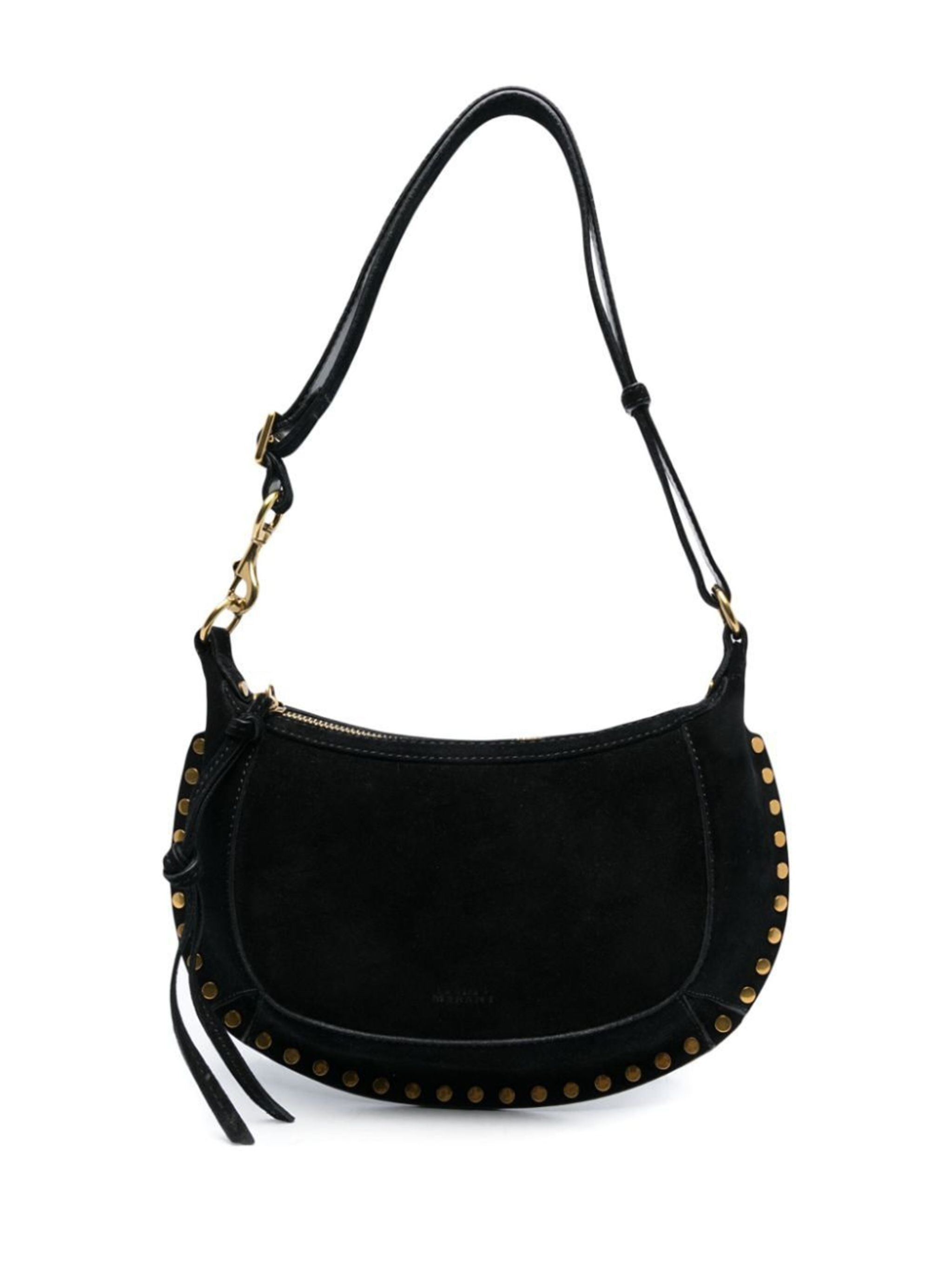 Oskan Moon shoulder bag from ISABEL MARANT featuring black, calf suede, gold-tone stud detailing, embossed logo to the front, top zip fastening, adjustable detachable shoulder strap, main compartment and internal slip pocket. Size & Fit Model Measurements: Bust: 87cm Height: 180cm Hips: 91cm Waist: 63cm DEPTH: 7cm HEIGHT: 16cm STRAP: 60cm WIDTH: 28cm