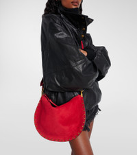 Isabel Marant's Oskan shoulder bag is crafted from suede with a softly structured silhouette. The Small design features a single compartment, magnetic fastening, and a detachable zipped pouch for added functionality. Product Details - Material: calf leather (suede) - Lining: fabric - Made in Tunisia - Designer color name: Scarlet Red - Item color: red - Hardware color: gold - Closure: zipped top - Detachable, adjustable shoulder strap - Internal details: internal slot pocket - Includes: dust bag - Item number: P01067306 Size & Fit - Height 23cm-9" - Width 33,5cm-13" - Length of handles 44cm-17.5" - Adjustable shoulder strap - Max. length shoulder strap 109cm-43"
