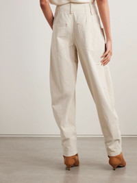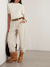 The curved barrel shape of Isabel Marant's 'Oumaya' jeans is effortlessly cool. They sit high on the waist and have unexpected red stitching along the placket and belt loops. Size & Fit - Fits true to size, take your normal size - High-rise, cut for a loose fit with a tapered hem - Mid-weight, non-stretchy denim - Model is 175cm/ 5'9" and is wearing a FR 36 Details & Care - Ecru denim - Partially concealed button fastenings along front - 100% cotton - Dry clean