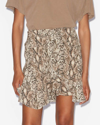 Short gathered silk blend skirt with python print Gathered front waistband Done up on the side with a hook and a hidden zipper Frilly asymmetrical hem Thin unlined fabric Flared and flowing cut Style: JU0337FAC1J05I23NL OZANY 91% silk, 9% elastane