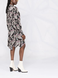 paisley-print silk dress multicolour silk paisley print ruffled detailing asymmetric hem mock neck long sleeves Imported Composition Silk 100% SIZE & FIT Model measurements Height 5 ft 10 in(1.78 m) Bust/Chest 31.1 in(79 cm) Hips 33.85 in(86 cm) Waist 24.01 in(61 cm) FittingInformation This piece fits true to size. We recommend you get your regular size Cut for a loose fit Made with a lightweight non-stretch fabric Washing instructions Dry Clean Only