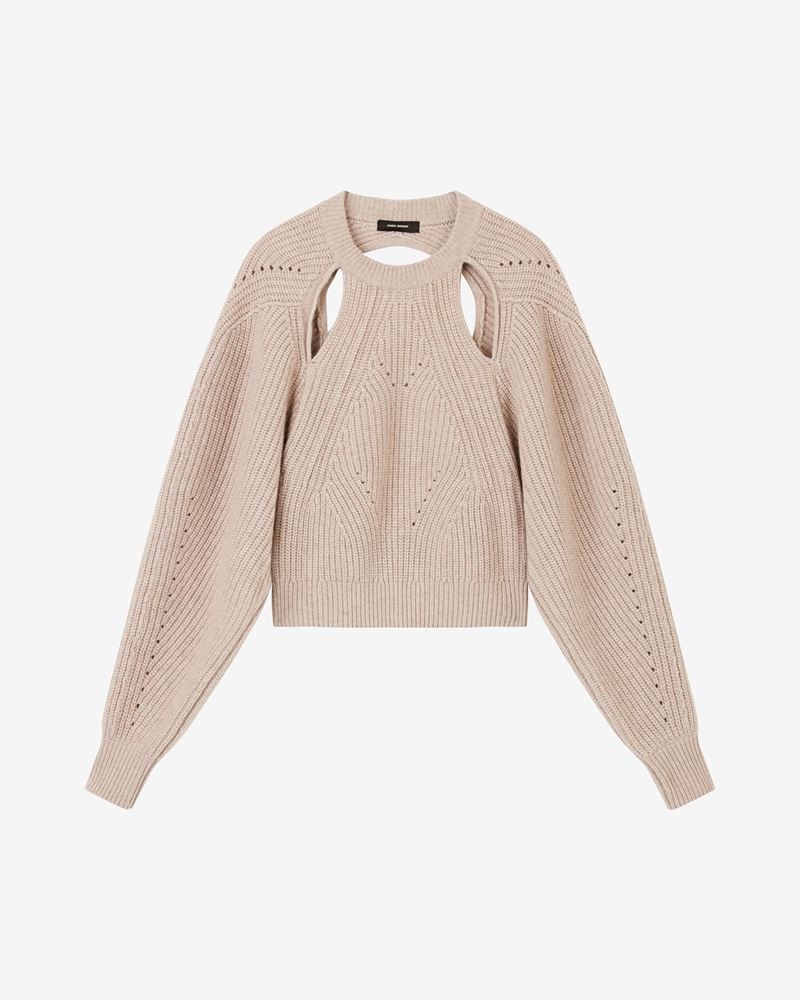 Cashmere-blend sweater with long sleeves Open back The model is wearing a size FR 36 and she is 1m77 Reference : PU1993-22A034I PALMA 70% Wool, 30% Cashmere FITTING ADVICE Fits true to size