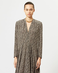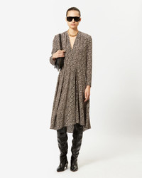 Printed silk midi dress with long sleeves V neck Reference: RO0213FA-A3J10I PATEL 91% Silk, 9% Elastane FITTING ADVICE Fits true to size The model is wearing a size FR 38 and she is 1m77