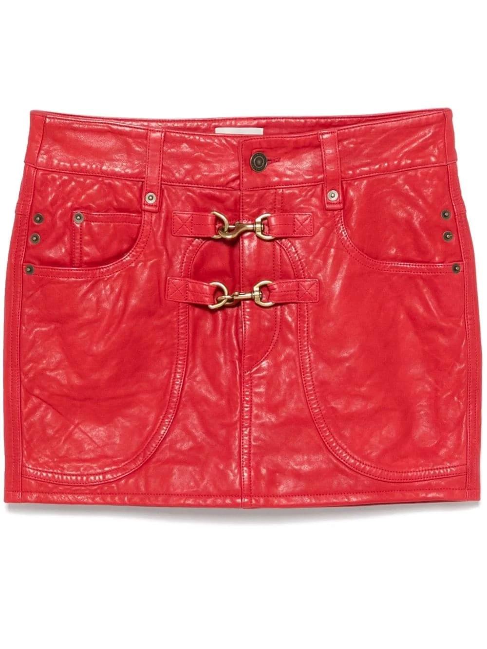 Paulina mini skirt Highlights - Red - Lambskin - Smooth grain - Panelled design - Concealed fly and button fastening - Lobster claw fastening - Mid-rise - Belt loops - Rivet detailing - Classic five pockets - Full lining - Straight hem - Thigh-length Imported Composition Outer: Lamb Skin 100% Lining: Viscose 100%, Cotton 100% SIZE & FIT Model measurements Height 5 ft 11 in(1.8 m) Bust/Chest 31.49 in(80 cm) Hips 36.61 in(93 cm) Waist 24.4 in(62 cm) FittingInformation This mini-length skirt is intended to be worn just below the waist Soft leather has a supple and smooth construction offering some flexibility